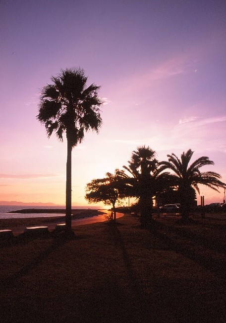 焼野海岸は、夕焼け(サンセット)と、夕闇(トワイライト)が有名な場所です。天気が良ければ、夏などの日の長い時期には、沈みゆく陽の光と夜の帳がうまく相まみえて、非常に美しく、幻想的な海と空を目にする