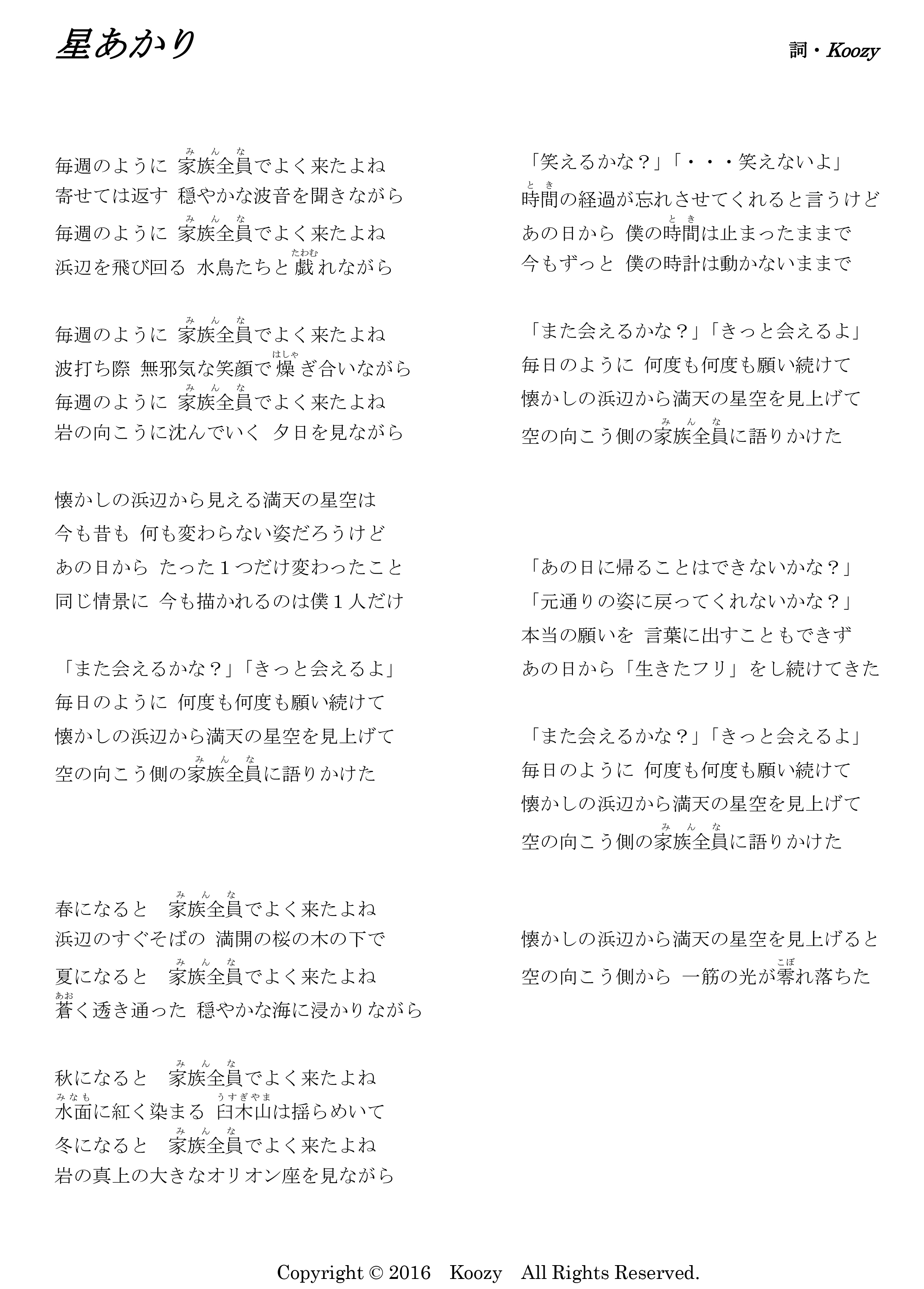 星あかり 詞・Koozy