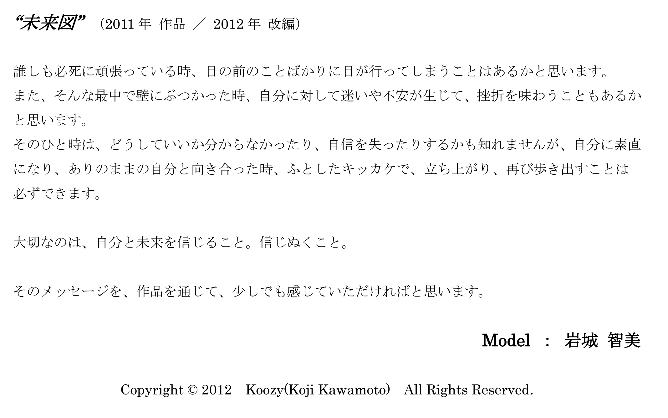 HOME > 作品集 > Monthly Koozy Back number > Monthly 写真詞集 Back number > Vol.3 "未来図"